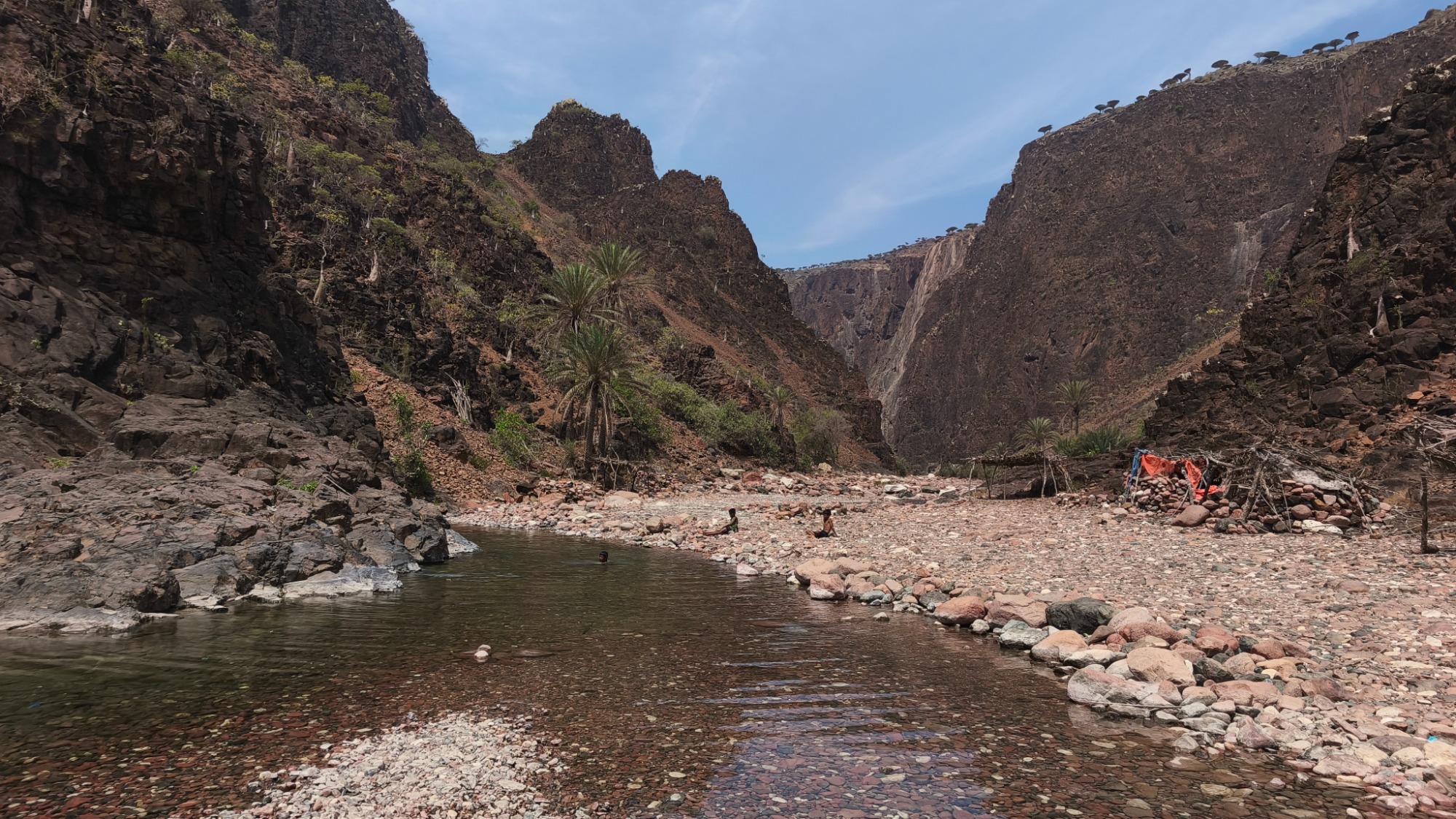 Malgrat això, Socotra ha mantingut una relativa calma. L'illa està allunyada dels conflictes del continent i els socotrans són persones pacífiques, i pots anar sol pels carrers de la ciutat sense preocupacions. Jo m'he trobat més segur a Socotra que al centre de Girona; he deixat objectes de valor a la tenda de campanya tot el dia o a la platja mentre em banyava sense preocupacions, i ningú no n'ha tocat res.