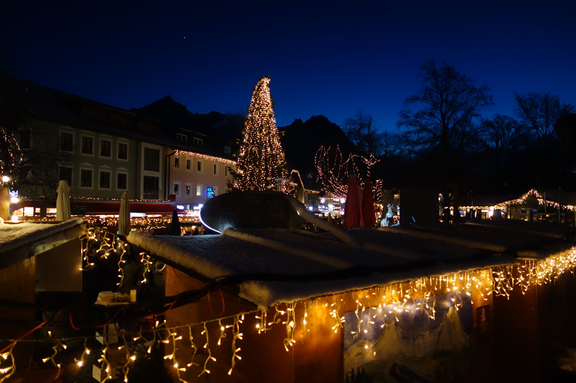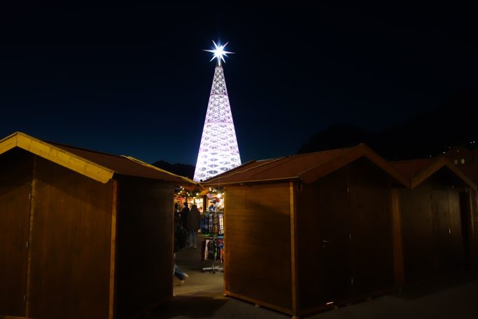 Arbre de Nadal amb els Alps de fons